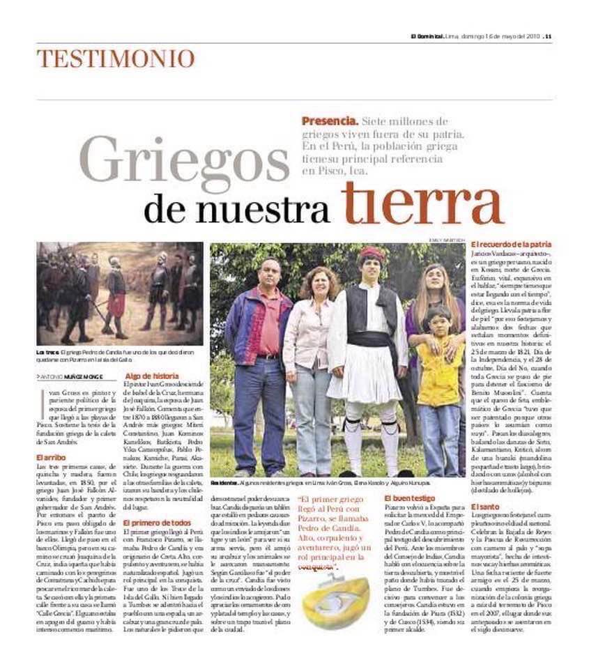 Εγώ από μεριά μου θέλω να ευχαριστήσω το Περού που φιλοξένησε τα αδέλφια μας και που μπόρεσαν και έφτιαξαν οικογένειες και ζούνε σε ένα ξένο για εμάς αλλά κράτος δικό τους και φιλόξενο.