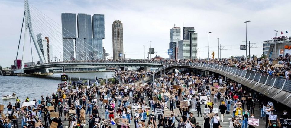 Η ολλανδική αστυνομία ζήτησε σήμερα από μερικές χιλιάδες διαδηλωτές που είχαν συγκεντρωθεί στην πόλη του Ρότερνταμ να πάνε στα σπίτια τους, επειδή στην αντιρατσιστική διαδήλωση, στην οποία συμμετείχαν, επικρατούσε συνωστισμός και το πλήθος δεν μπορούσε να τηρήσει τους κανόνες κοινωνικής αποστασιοποίησης.