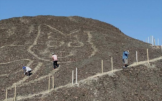 Περουβιανοί αρχαιολόγοι, που πραγματοποιούν εργασίες συντήρησης στη περιοχή Νάζκα, ανακάλυψαν τη μορφή μιας γάτας στην πλαγιά ενός λόφου που ήταν σχεδόν διακριτή και σχεδόν άθικτη από το χρόνο, όπως ανέφερε το Υπουργείο Πολιτισμού της χώρας.