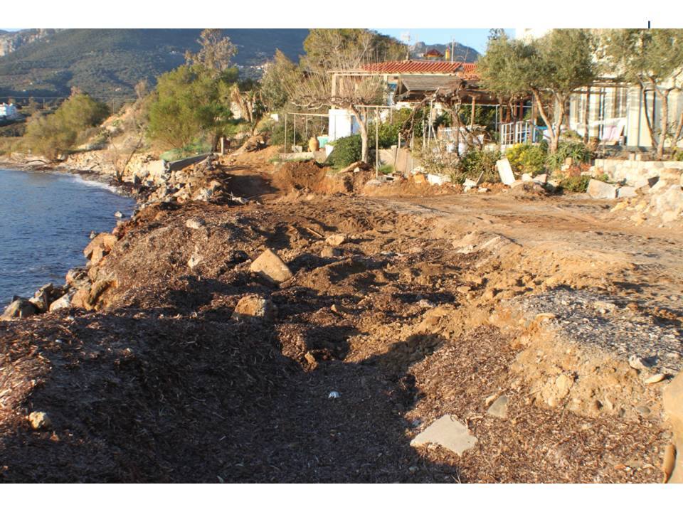 Αιγιαλός που μπαζώνεται με διάφορα υλικά, σκίροι, βράχοι, τσιμέντα, σίδερα και χώματα! Σε λίγο θα εξαφανισθεί και θα υπερυψωθεί από σκίρα, που έχουν εναποτεθεί σε χωράφι εκατό μέτρα πιο πάνω!