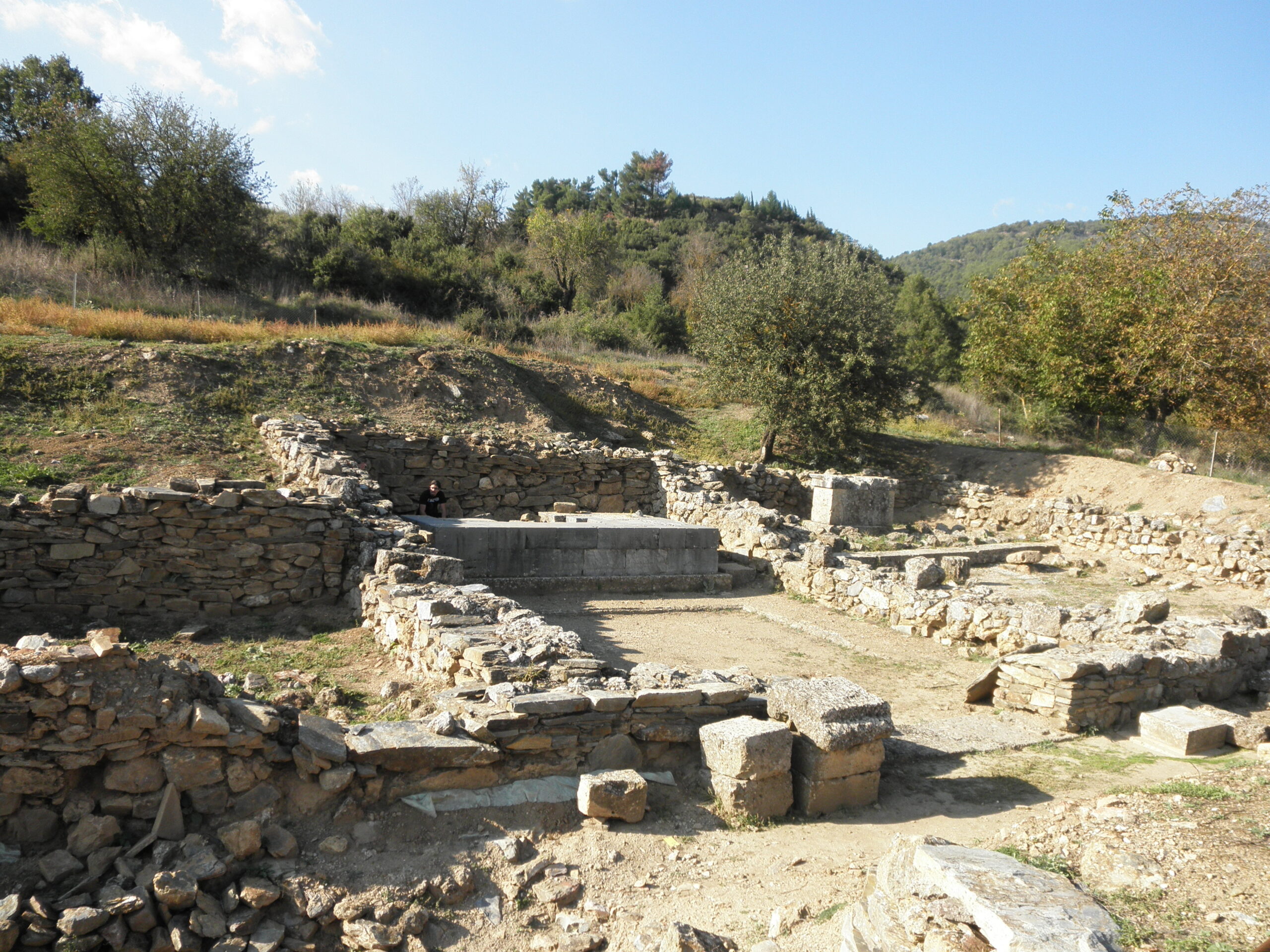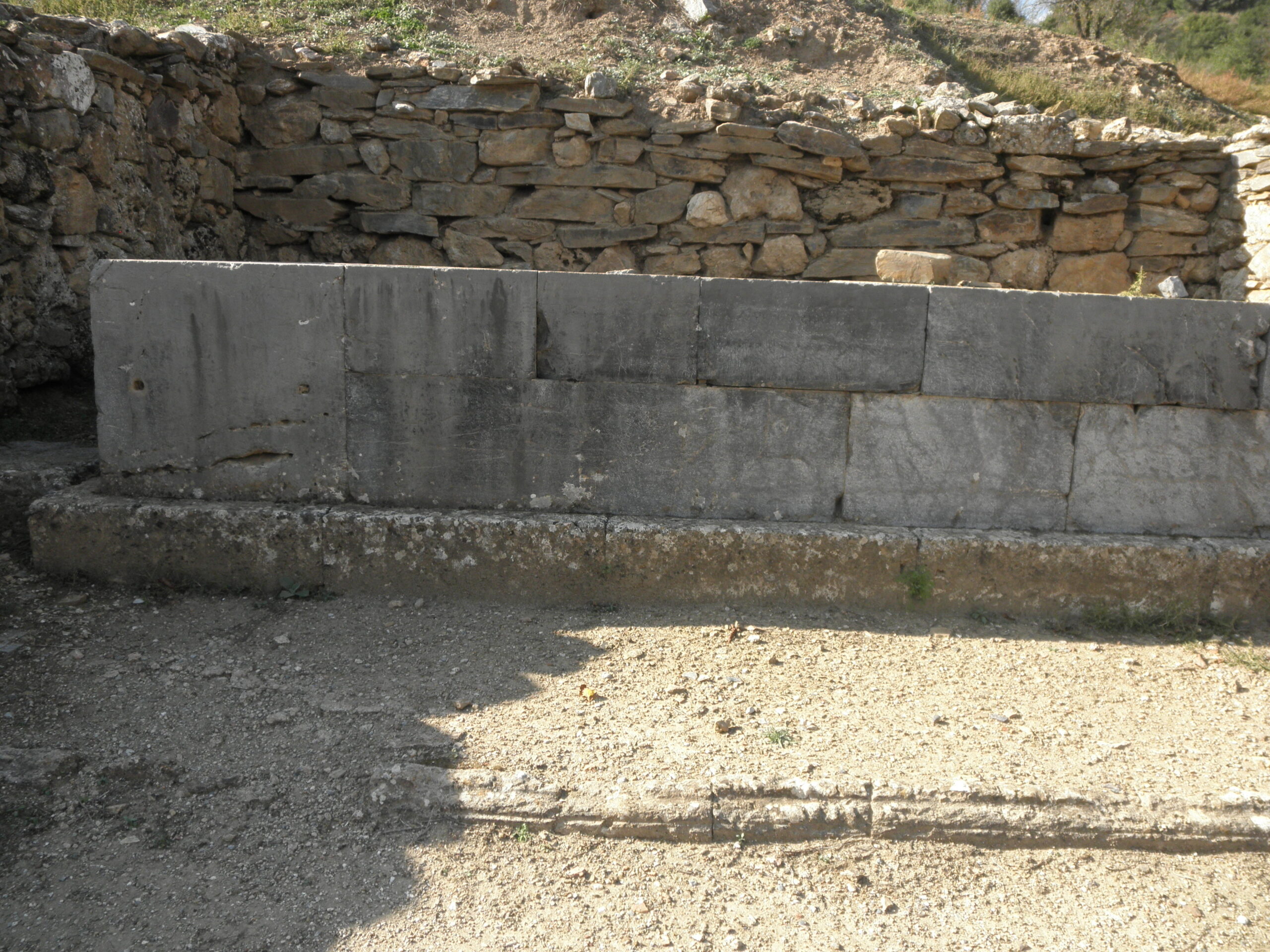 Το βάθρο των δύο αγαλμάτων-Ασκληπιού και Υγιείας- που βρέθηκε στο ιερό. Φέρει επιγραφή με το όνομα του γλύπτη. Το βάθρο είναι κατασκευασμένο από καλά πελεκημένους κυβόλιθους φαιού χρώματος και έχει στο κατώτερο μέρος της δυτικής πλευράς του μία βαθμίδα που εξέχει. Στον ανώτερο δόμο υπάρχει μία άριστα σωζόμενη επιγραφή, στην οποία αναφέρεται ο γλύπτης που δημιούργησε τα δύο αγάλματα (ΑΤΤΑΛΟΣ ΛΑΧΑΡΟΥ ΑΘΗΝΑΙΟΣ ΕΠΟΙΗΣΕΝ).