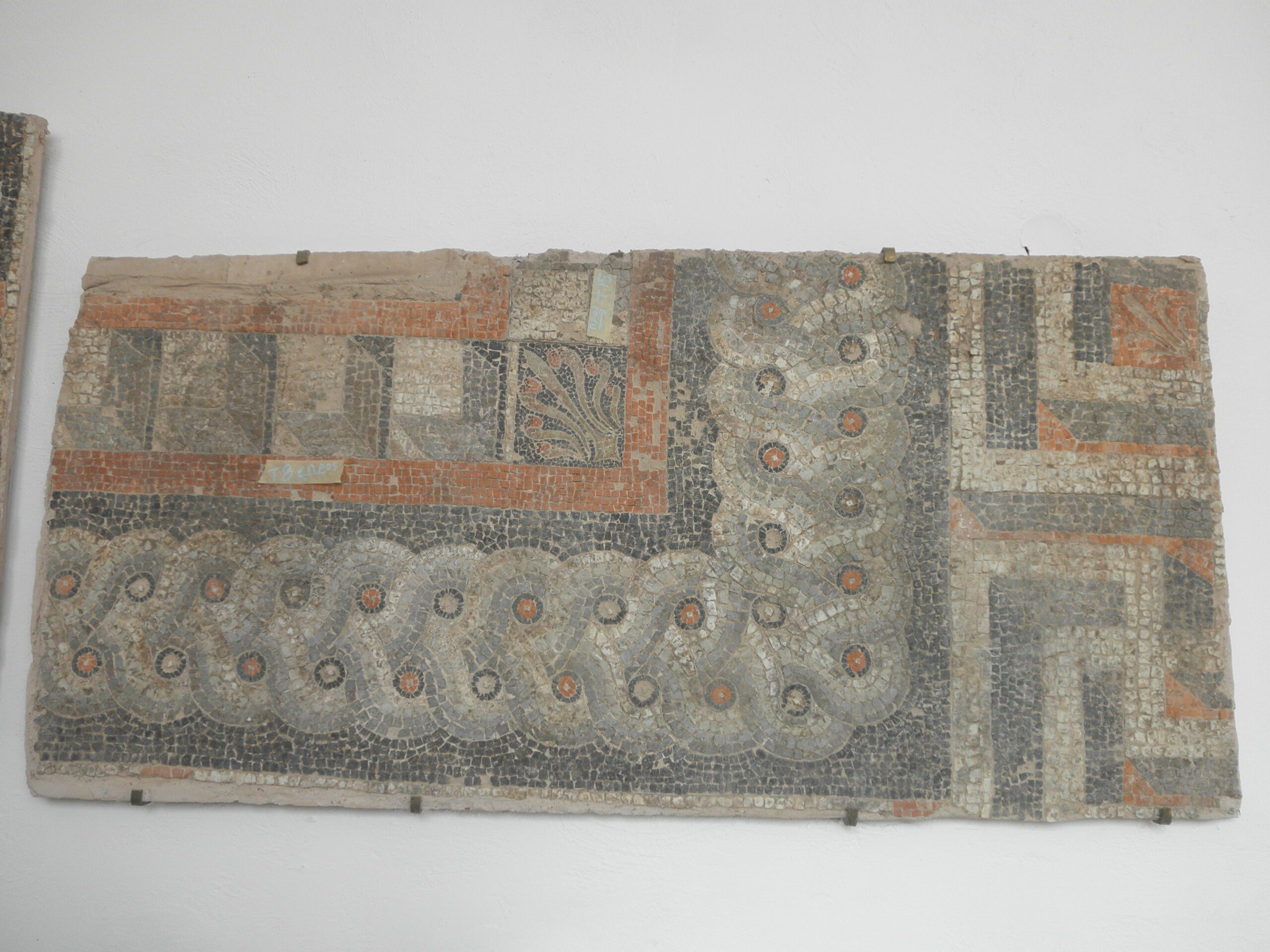 Ψηφιδωτό που βρέθηκε στο κεντρικό τμήμα του σηκού του ιερού. Φυλάσσεται στο τοπικό μουσείο.